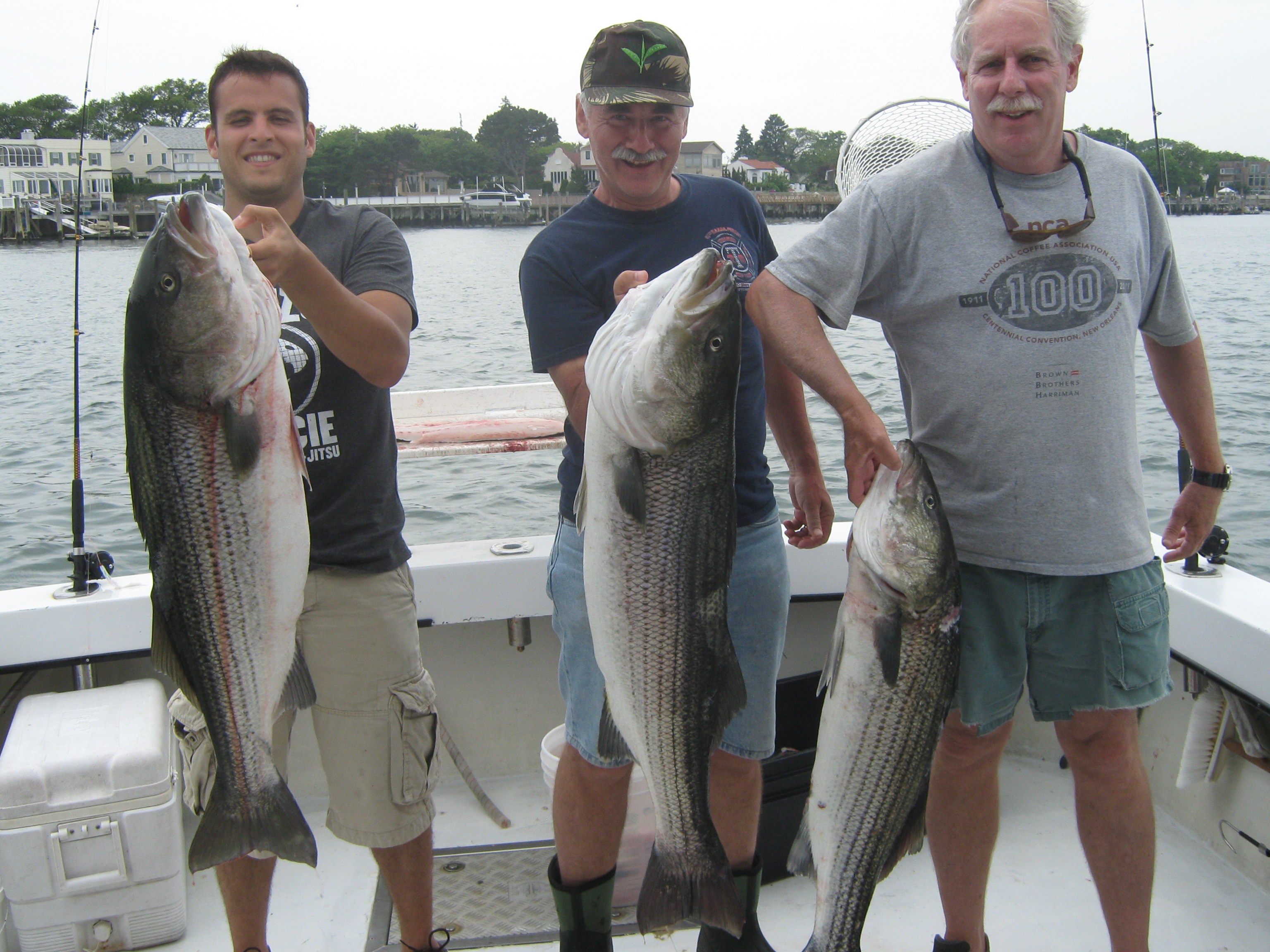Johm Chris, Gary, Herb 75 lb black drum, bass 25-32 lbs